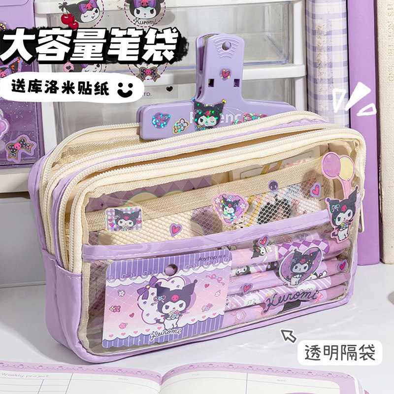可爱笔袋2023年新款透明大容量小学生初中生女生高颜值学习文具盒女孩版儿童中学生简约ins一年级收纳铅笔盒